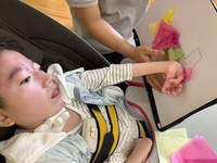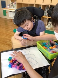 お花紙を小さく丸める、その丸めたものを台紙に貼りつけるなど、一人一人の生徒がより楽しく、活躍できる活動をしています。完成までもう少しです。お楽しみに!!!