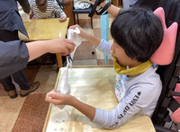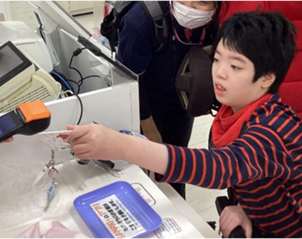 2日目は、ふれあいプラザでボランティアさんと一緒に折り紙つりゲームを楽しんだり、コクーンシティで買い物学習に取り組んだり、先生と一緒にキャッシュレスでお買い物をしました。昼食はフードコートでボランティアさんと一緒に食べました。初めての場所でも落ち着いて食べることができました。