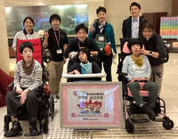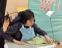 1日目は、埼玉トヨペット内にある、福祉事業所のはあとねっと輪っふるで、作業体験に取り組みました。おしぼりを手で裂いたり、ハサミで切ったりして、ウエスづくりをしました。ウエスとは、工場で使用する業務用のふき取り布です。また、自分の名刺をつくって、職員の方と名刺を交換しました。夜は、ホテルブリランテ武蔵野に宿泊しました。ホテルのお食事をおいしそうに食べている姿が見られました。