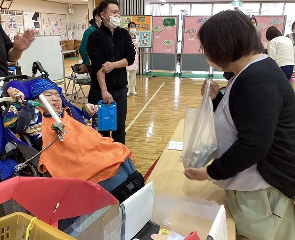 お客様に気持ち良く買い物をしてもらうことを忘れずに「また来てね」「お買い上げありがとうございました。」と自分たちで心を込めて作ったものを渡す姿が見られました。そして頒布会の時間中は、児童や生徒の方々に笑顔や良い表情で接客していました。