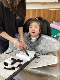 2026年最初の国語の授業では、みんなで集まり「あけましておめでとうございます」とお正月の挨拶を行ってから、それぞれが今年頑張りたいことを思い浮かべながら勢いよく筆を動かして書初めをすることができました。